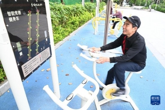 4月24日,市民在福州市鼓樓區(qū)西河智慧體育公園使用智能競(jìng)賽健身車。