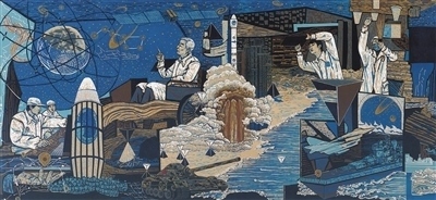 “大國重器”亮點(diǎn)紛呈,脫貧攻堅(jiān)成就舉世矚目,這些時(shí)代新象都在展覽中得到體現(xiàn)。例如,張輝君油畫《蛟龍入?!?、沙永匯版畫《北斗》等作品,折射出我國科技自主創(chuàng)新能力不斷提升。孔紫中國畫《戈壁灘》和劉云中國畫《美麗鄉(xiāng)村》,分別借助植樹造林的人物群像塑造、新農(nóng)村景觀的宏闊描繪,展現(xiàn)了彪炳史冊的人間奇跡。
