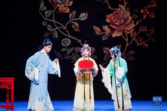 5月15日,演員在舞臺(tái)上表演黃梅戲《羅帕記》。