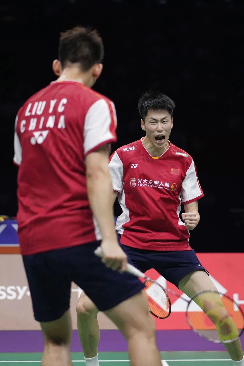 以保木卓朗/小林優(yōu)吾遺憾、懊惱的表情為背景,劉雨辰越過(guò)邊界擋板在場(chǎng)內(nèi)狂奔,與場(chǎng)邊的教練擊掌相慶?!澳孟卤荣悾瓿闪宋覀兊娜蝿?wù),沒(méi)給男雙丟臉,在主場(chǎng)也沒(méi)給球迷們丟臉!”劉雨辰賽后說(shuō)。