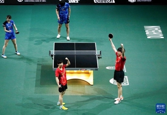 當(dāng)日,在南非德班進(jìn)行的2023年世界乒乓球錦標(biāo)賽混合雙打決賽中,中國組合王楚欽/孫穎莎以3比0戰(zhàn)勝日本組合張本智和/早田希娜,奪得冠軍。