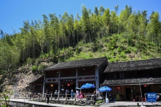 5月30日,游客在布袋坑村的農(nóng)家樂里用餐。
