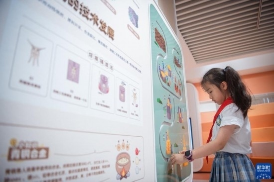 6月1日,小朋友在館內(nèi)體驗(yàn)交互項(xiàng)目。