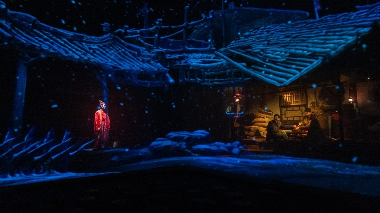 只有紅樓夢·戲劇幻城還將“亦真亦假、榫卯拼接、虛實留白、輪回轉(zhuǎn)世”等中國式哲思與美學理念,運用到戲劇創(chuàng)作與景觀設計中。從幻城入口處16扇風格迥異的“中國門”開始,到幻城中隨處可見的“留白”、“古建”與“方塊字”,在如迷宮幻境一般的建筑空間中,創(chuàng)新式的用最中國的方式講述中國的故事。