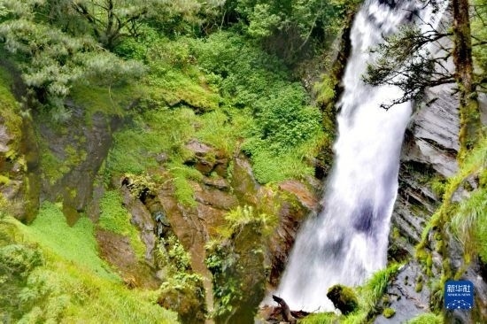 這是勒布溝內(nèi)的一處瀑布(6月27日攝)。