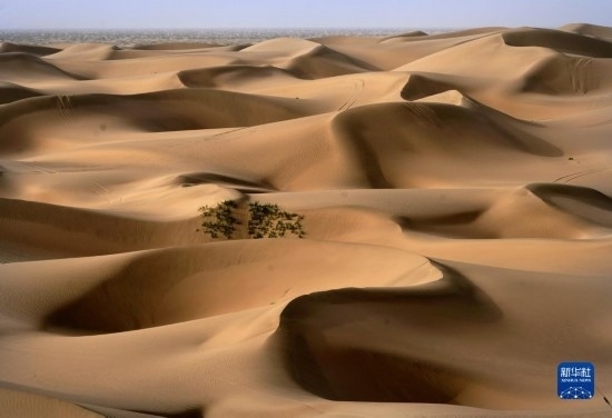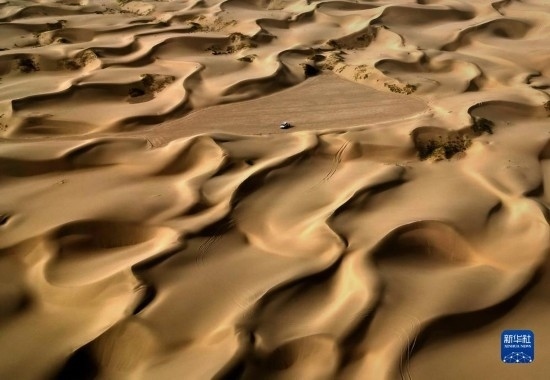 這是9月7日在新疆喀什地區(qū)麥蓋提縣N39°沙漠旅游景區(qū)拍攝的沙漠風(fēng)光(無人機(jī)照片)。