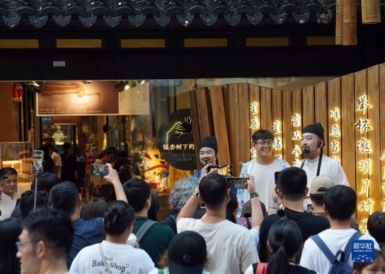 9月17日,在豫園商城,扮演李白、杜甫的演員邀請(qǐng)游客進(jìn)行對(duì)詩和猜謎等互動(dòng)游戲。