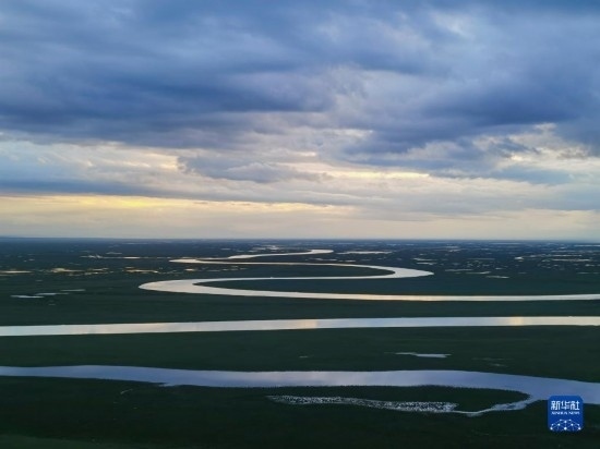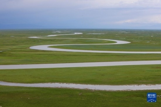 巴音布魯克草原景色(7月7日攝,無人機(jī)全景照片)。