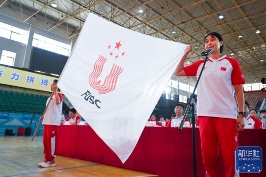 當(dāng)日的代表團(tuán)成立大會(huì)以線(xiàn)下線(xiàn)上相結(jié)合的方式舉行。來(lái)自成都體育學(xué)院的曹茂園和來(lái)自北京工業(yè)大學(xué)的張雨涵分別代表運(yùn)動(dòng)員和教練員宣誓。