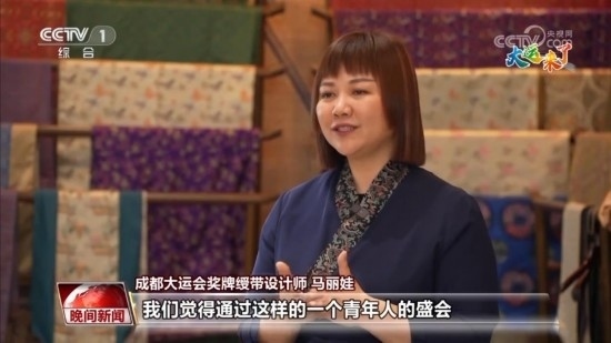 成都大運(yùn)會獎牌綬帶設(shè)計師 馬麗娃:這個體育賽事其實是一個橋梁,通過這樣一個青年人的盛會,把我們的優(yōu)秀傳統(tǒng)文化用肉眼可見的形式傳遞出去,我覺得這是非常棒的一種形式。