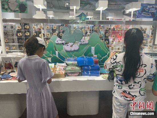 當天,文創(chuàng)商店擠滿了游客,記者發(fā)現(xiàn)部分熱門商品已經(jīng)售罄,忙碌的職員們不停地補貨。在蘭州讀大學的小郎趁著放暑假的空檔,現(xiàn)在甘肅省博物館文創(chuàng)商店打暑期工。她說,玩偶類商品和絲路尋寶的盲盒更受小朋友喜愛。