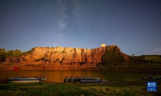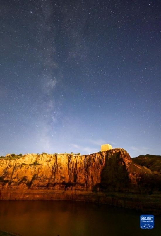 黃河老牛灣位于內(nèi)蒙古自治區(qū)和山西省交界處。夜空下,峽谷兩岸壁立千仞,黃河奔流不息,明長城依山而行,風光壯美。