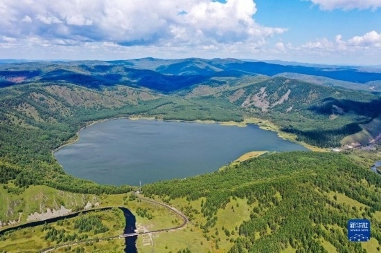 這是8月31日拍攝的阿爾山國(guó)家森林公園阿爾山天池景色(無(wú)人機(jī)照片)。