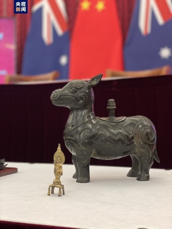本次歸還的文物包括潛龍化石、鎏金觀音銅像和彩繪陶制人物騎馬俑。經(jīng)初步鑒定,潛龍化石屬于晚侏羅世到早白堊世的恐龍化石,而觀音銅像和騎馬俑的歷史可追溯到唐代甚至北朝,具有珍貴的歷史文化價(jià)值。同時(shí),澳大利亞國(guó)家美術(shù)館還另外向中國(guó)政府捐贈(zèng)了一件牛形的盛酒禮器——“犧尊”。我國(guó)文物專家通過對(duì)文物基本信息和圖片的判斷,鑒定這件“犧尊”用途為酒器,是明清或近代的仿古文物藝術(shù)品。