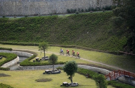 10月28日,參賽選手在比賽中。當日,第一屆全國學生(青年)運動會男子山地自行車越野賽在廣西南丹縣舉行,貴陽市代表隊選手王勝以1小時4分36秒奪得冠軍,遵義市代表隊選手文靈浩以1小時4分38秒獲得亞軍,成都市代表隊選手解道超以1小時5分12秒獲得季軍。新華社記者 陸波岸 攝