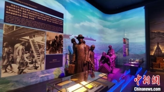 中國僑都華僑華人博物館展示當(dāng)年“契約華工”出洋工作的場(chǎng)景和資料。江門市委宣傳部 供圖