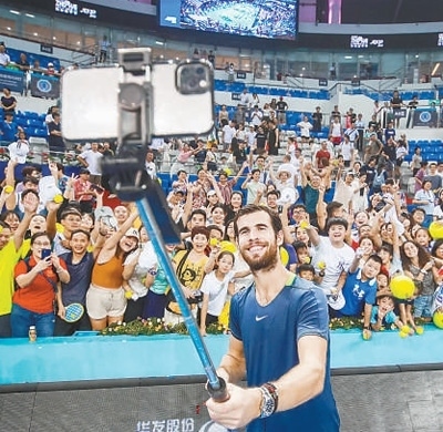 俄羅斯球員卡恰諾夫在2023年珠海網(wǎng)球冠軍賽中與球迷合影。珠海網(wǎng)球冠軍賽組委會供圖