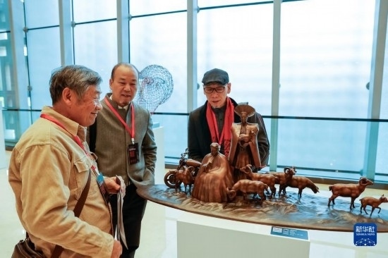 11月30日,人們在欣賞首屆天府雕塑展上展出的作品。