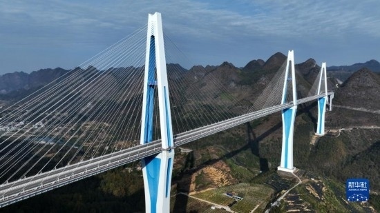 初冬時節(jié),在貴州省黔南布依族苗族自治州平塘縣,高山峽谷之間的平塘特大橋巍然屹立,自然風光與大橋雄姿吸引了眾多游客。近年來,平塘縣依托平塘特大橋推進“橋旅”融合發(fā)展,著力打造集橋梁博物館、天文科普館、懸崖酒店等于一體的綜合旅游景點。