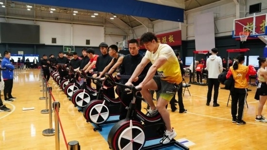 2023年12月29日,2023年國家隊冬訓體能大比武在國家體育總局訓練局舉行,來自射擊、舉重、田徑、游泳、跳水、花樣游泳、體操、蹦床、乒乓球、羽毛球等10支國家隊的150名運動員參加活動。圖為國家游泳隊運動員覃海洋在測試中。