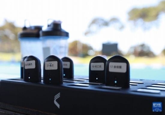這是4月26日拍攝的中國女曲隊(duì)球員體能數(shù)據(jù)監(jiān)測器。新華社記者 馬平 攝