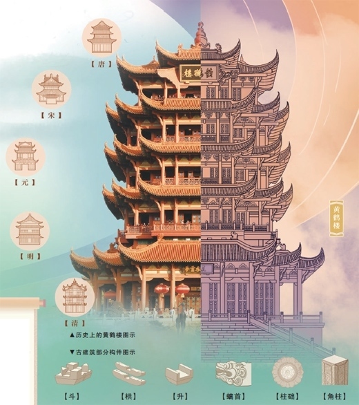 2022年,馮中景完成了他迄今為止最滿意的一件作品——黃鶴樓模型?!扒捌诶L圖一個(gè)半月,制作則花了兩個(gè)多月,經(jīng)常需要工作到凌晨。”馮中景還記得,作品最終完成的那個(gè)深夜,他望著包含1.7萬多塊木質(zhì)零件的黃鶴樓模型,“‘白云千載空悠悠’的場景仿佛就在眼前。”
