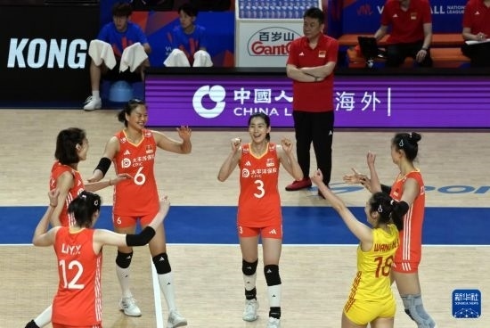 當日,在世界女排聯(lián)賽中國香港站比賽中,中國隊3比2戰(zhàn)勝土耳其隊。