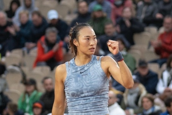 6月1日,鄭欽文在2024法國(guó)網(wǎng)球公開(kāi)賽女子單打第三輪比賽中慶祝得分。新華社記者 孟鼎博 攝