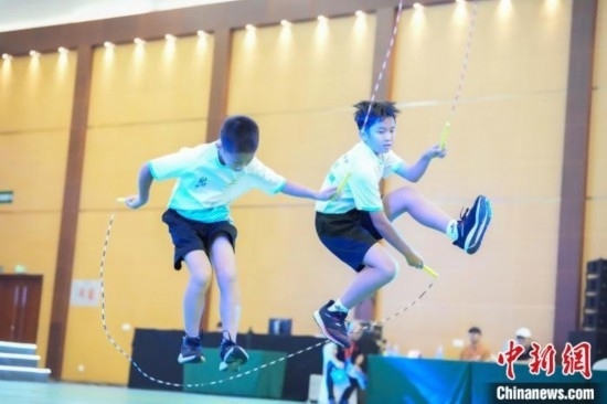 個人繩、車輪跳、交互繩……第十二屆海峽青年節(jié)·首屆海峽兩岸(福州)青少年跳繩錦標賽13日在福州海峽青年交流營地開賽。