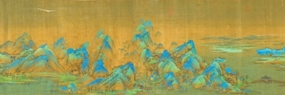 中國(guó)畫(huà)《千里江山圖》局部,作者北宋王希孟。故宮博物院藏