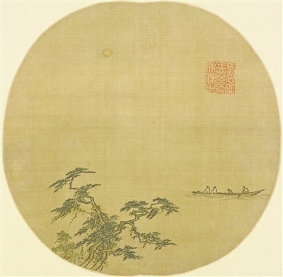 中國(guó)畫(huà)《松溪泛月圖》,作者南宋夏圭。故宮博物院藏
