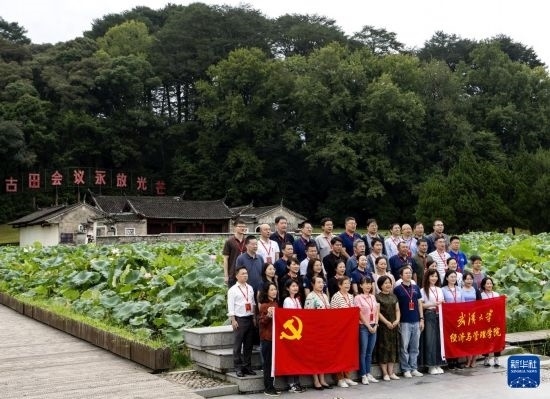 8月29日,來(lái)自武漢大學(xué)經(jīng)濟(jì)與管理學(xué)院的培訓(xùn)團(tuán)隊(duì)在古田會(huì)議會(huì)址前合影。
