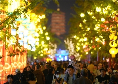 今年中秋假期,“京彩燈會(huì)”吸引了超過12萬名游客。國慶假期前4天,游客量達(dá)7萬余人。除了大飽眼福,燈會(huì)還設(shè)立150余家特色商鋪,覆蓋老字號、非遺、文創(chuàng)、餐飲美食等,豐富游客體驗(yàn)。多家知名餐飲企業(yè)在燈會(huì)擺攤設(shè)點(diǎn)為游客服務(wù),賞燈之余還能享受大廚現(xiàn)做的星級美食。