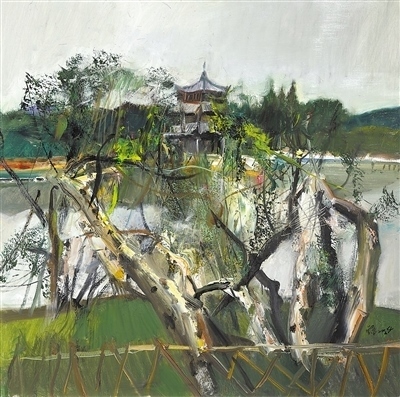 一系列實(shí)踐折射出新時(shí)代油畫的特點(diǎn):既蘊(yùn)含現(xiàn)實(shí)主義理念和表現(xiàn)的深度,又富有東方浪漫主義的詩(shī)性。比如,在“第四屆青山行不盡——唐詩(shī)之路藝術(shù)展:長(zhǎng)風(fēng)幾萬(wàn)里”“山海神游——詩(shī)路浙江山水繪畫臺(tái)州主題展”等展覽上,一些充滿山海情懷、草木生機(jī)、時(shí)尚意趣的作品,正體現(xiàn)了創(chuàng)作者根植時(shí)代生活的藝術(shù)創(chuàng)造,以及圓融飽滿、充滿東方意蘊(yùn)的表達(dá)?!敖搅魟氽E,我輩復(fù)登臨”。對(duì)于畫家而言,每一次登臨祖國(guó)的名山大川,都仿佛是應(yīng)和歷史的邀約。我們重識(shí)祖國(guó)的山水,接受山水的浸潤(rùn),直面山水的歷史,把握山水的立意,實(shí)現(xiàn)山水的寫意。這種腳踏大地、丈量古今的行走,成為詩(shī)意汩汩不絕的生長(zhǎng)方式——不管承載這詩(shī)意的是煥彩文章、是筆墨油彩、是影像裝置,還是園林雕塑或者其他。