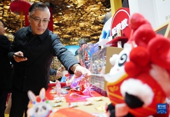 11月19日,參觀者在拍攝“蛇墩墩”系列新品。新華社記者 張晨霖 攝