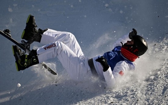 2月9日,李心鵬在落地時(shí)發(fā)生失誤。新華社記者 夏一方 攝