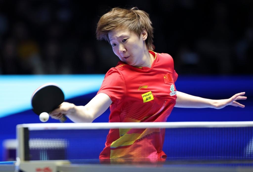 2月23日,王曼昱在比賽中回球。新華社記者 盧漢欣 攝