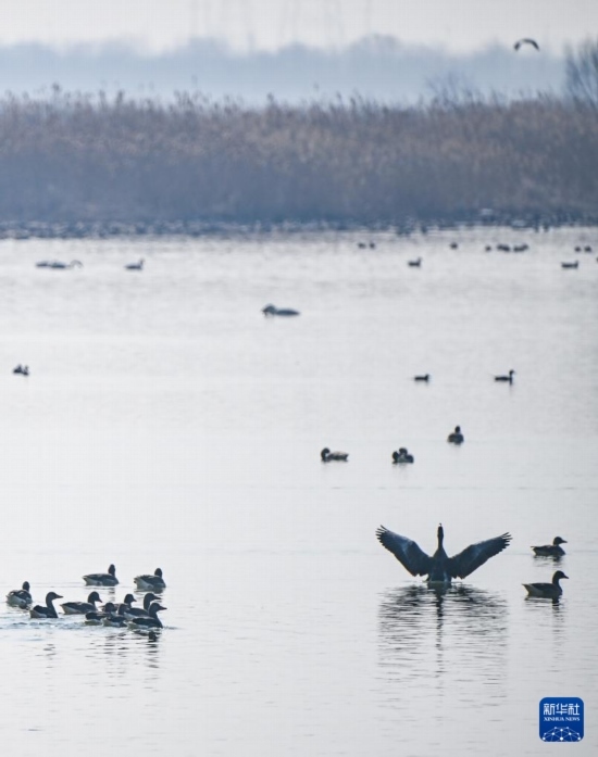 這是2月26日在天津七里海濕地自然保護區(qū)拍攝的候鳥。