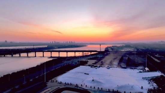 正月初五,兩趟高鐵列車在滹沱河上交會(huì)。