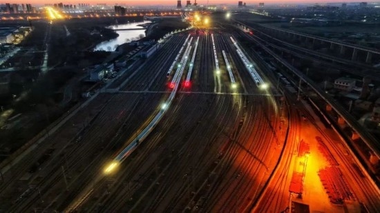 除夕當(dāng)天,一列復(fù)興號(hào)智能動(dòng)車組蓄勢(shì)待發(fā)。