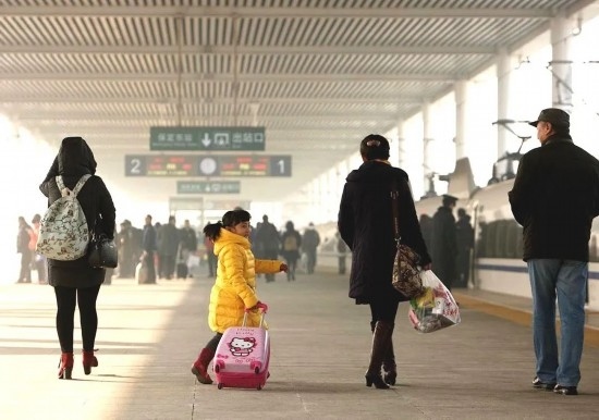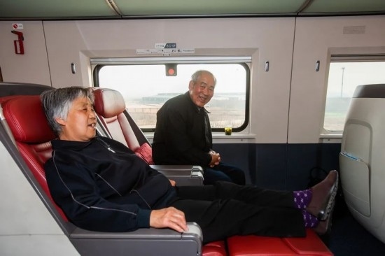 2015年,一對(duì)老兩口乘坐高鐵到北京與兒子過團(tuán)圓年,實(shí)現(xiàn)反向春運(yùn)。
