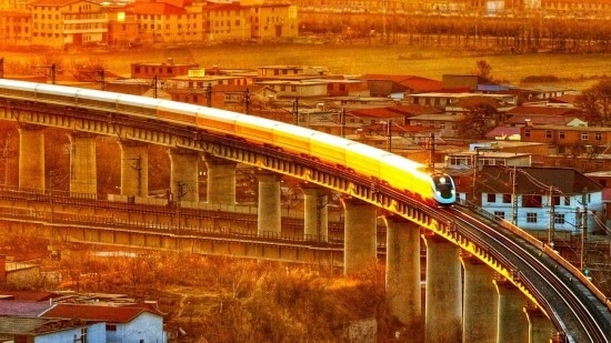 1月28日除夕,一列復(fù)興號(hào)動(dòng)車組迎著朝陽行駛在京廣高鐵上。