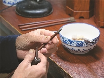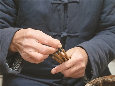 “無(wú)論是制作哪一類品種的宣筆,要能實(shí)現(xiàn)‘尖、齊、圓、健’均屬不易,需經(jīng)歷選料、水盆、制桿、裝套等多道工序、100多個(gè)環(huán)節(jié)?!币灾茥U為例,佘征軍介紹,工人需要先將筆桿磨平,再用工具在筆桿上挖出裝筆頭的洞,這套工藝沒(méi)有特定的參數(shù)可參考,全憑工人的手上感覺(jué)?!皩W(xué)徒入行,一般3到5年才能完整學(xué)會(huì)宣筆制造流程;要想做出一支優(yōu)秀的宣筆,至少10到12年的學(xué)習(xí)實(shí)踐;而要想學(xué)‘精’,需要一輩子的時(shí)間?!辟苷鬈娬f(shuō)。