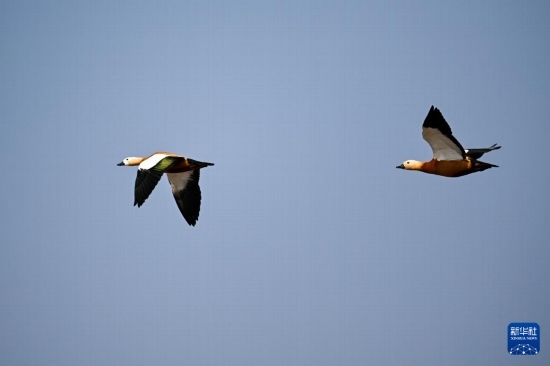 隨著天氣回暖,大批候鳥飛抵內蒙古呼和浩特市土默特左旗海流水庫。候鳥時而休憩覓食,時而展翅飛舞,給當?shù)貛聿鷻C。