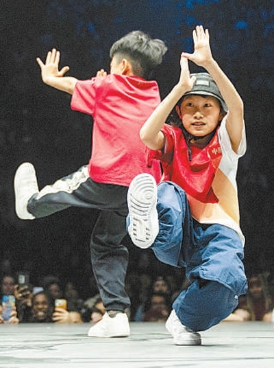 街舞舞種風(fēng)格各異。Breaking(霹靂舞)地板動(dòng)作高難而充滿力量感,Locking(鎖舞)因瞬間停頓而節(jié)奏感強(qiáng),Popping(震感舞)注重肌肉收放,Hip-Hop(嘻哈舞)則更強(qiáng)調(diào)自由隨性的表達(dá)和對(duì)音樂的獨(dú)特詮釋。賽場(chǎng)上,小舞者舞蹈動(dòng)作收放自如,展現(xiàn)出高超的身體協(xié)調(diào)能力、控制能力。他們的精彩“卡點(diǎn)”,在隨機(jī)播放音樂即興發(fā)揮的Battle(斗舞)中更是成為吸睛亮點(diǎn)。但做到這些還不夠,正如網(wǎng)友所說:“最后拼的都是文化底蘊(yùn)。”讓中國(guó)少年在對(duì)陣國(guó)際“技術(shù)天花板”時(shí)脫穎而出的,是他們超越了炫酷的淺表追求,舞出了可貴的文化情懷。