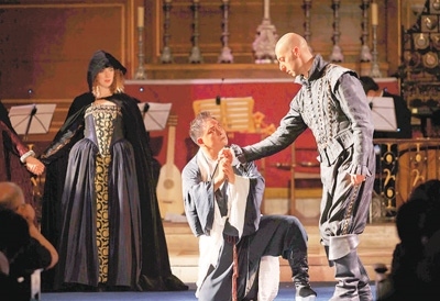 “往前走”的柯軍2016年和英國藝術(shù)家共同創(chuàng)作上演了湯顯祖和莎士比亞的“湯莎會”。中國昆曲演員和英國莎劇演員以中英雙語聯(lián)袂出演中英版《邯鄲夢》,這在昆曲和莎劇歷史上都是第一次,將原劇中四折最具代表性的段落作為主體,與《麥克白》《李爾王》《雅典的泰門》等莎士比亞經(jīng)典作品中的片段穿插交替,形成一種超時空的情境融合和人物體驗的中西創(chuàng)新表達(dá)。