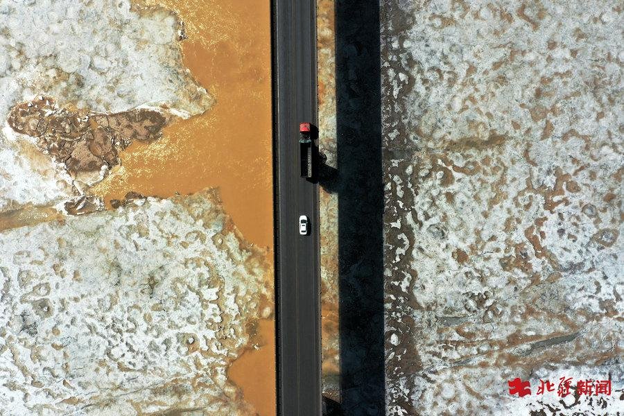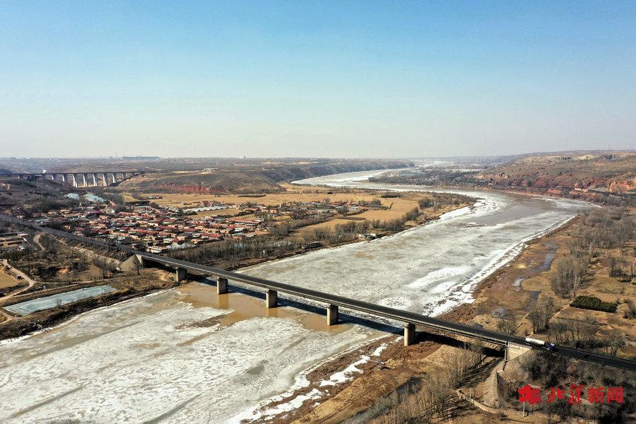 3月14日,無人機視角下的黃河喇嘛灣大橋。