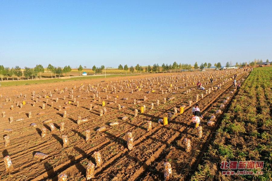 9月18日,呼和浩特市武川縣大魚得水溝村種植戶張永在和霍家溝村種植戶霍飛正在收獲土豆。