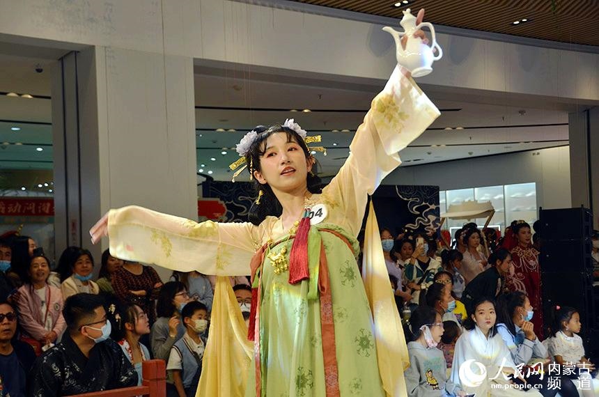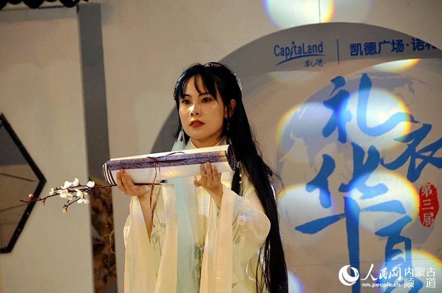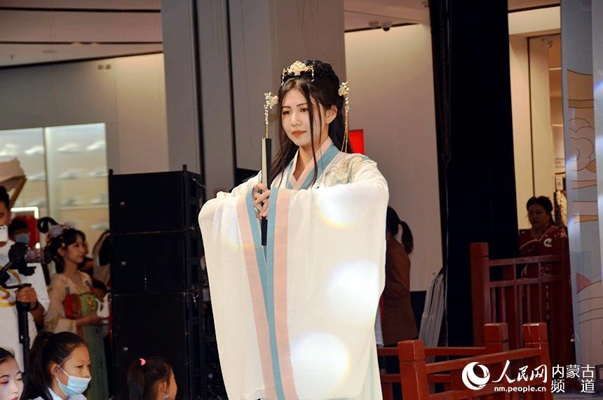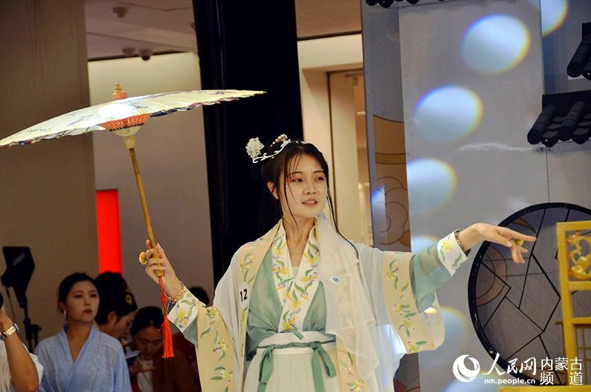 9月20日下午,在中秋佳節(jié)來臨之際,第三屆禮衣華夏漢服超模大賽在呼和浩特市凱德廣場精彩上演?,F(xiàn)場236名參賽選手經(jīng)過精心地裝扮,為現(xiàn)場的市民獻上了美輪美奐的服飾表演,展現(xiàn)了中國傳統(tǒng)服飾文化的古韻之美。(王慧)