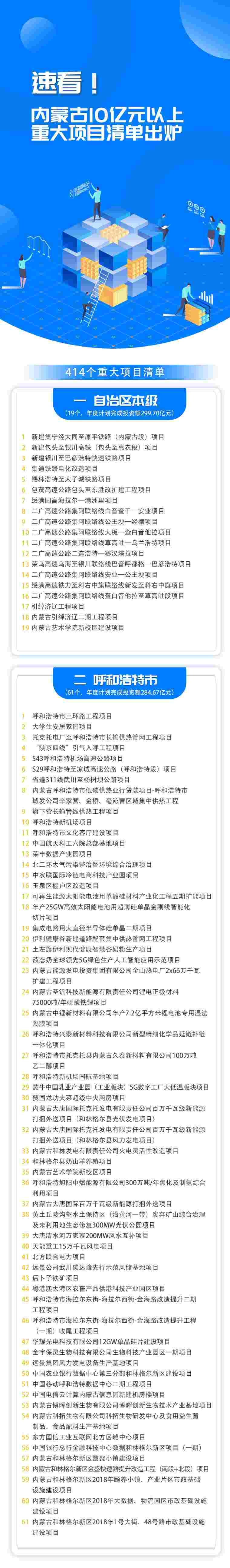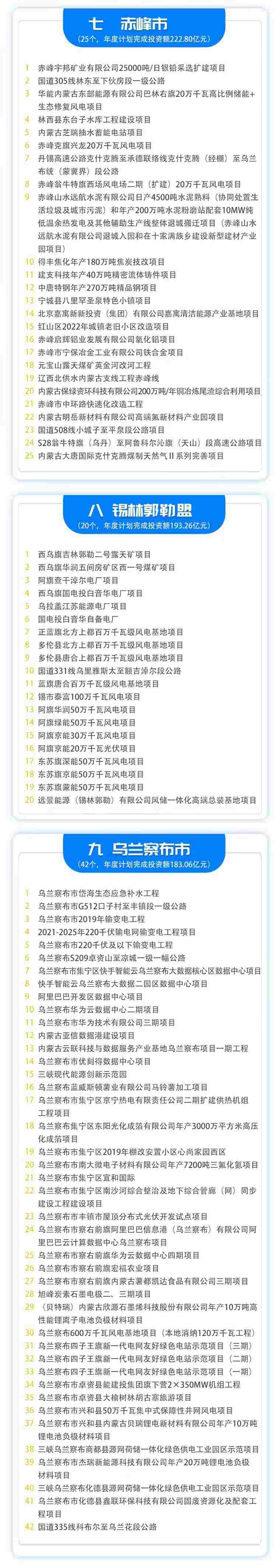 分盟市看,呼和浩特市計(jì)劃實(shí)施項(xiàng)目61個,包頭市60個,呼倫貝爾市15個,興安盟20個,通遼市23個,赤峰市25個,錫林郭勒盟20個,烏蘭察布市42個,鄂爾多斯市69個,巴彥淖爾市19個,烏海市20個,阿拉善盟21個。